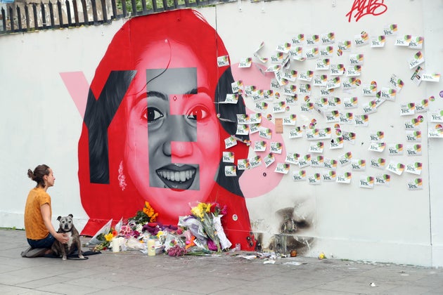 PA WIRE/PA IMAGES A woman kneels at a mural of Savita Halappanavar in Dublin